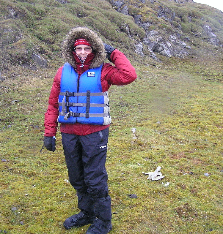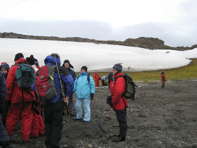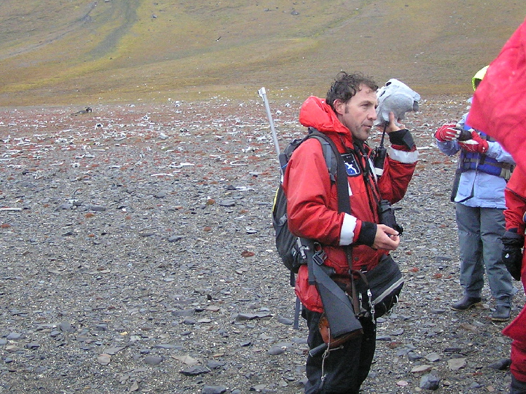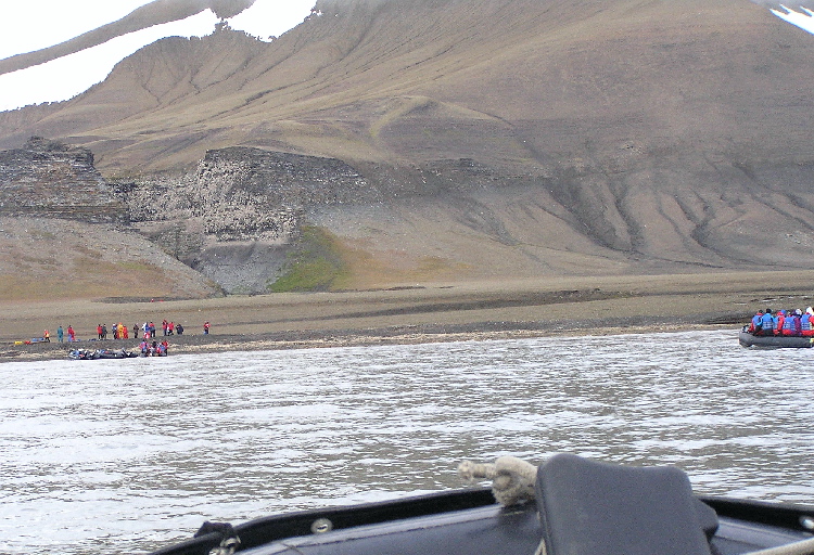![]() Dolerittneset landing Armed guides 8/11/08 | ![]() Typical rock and flora Small green are willow | ![]() Michal on tundra |