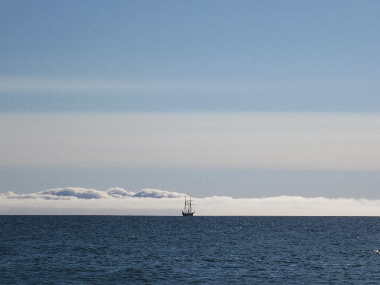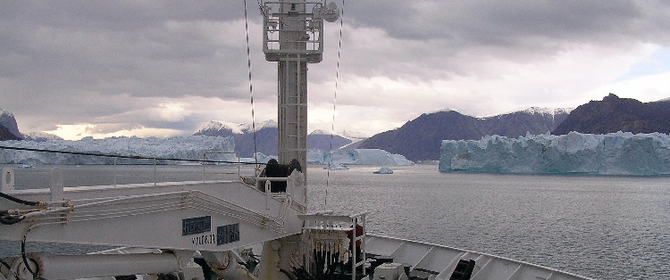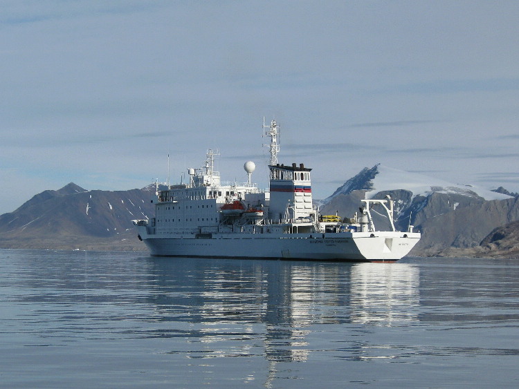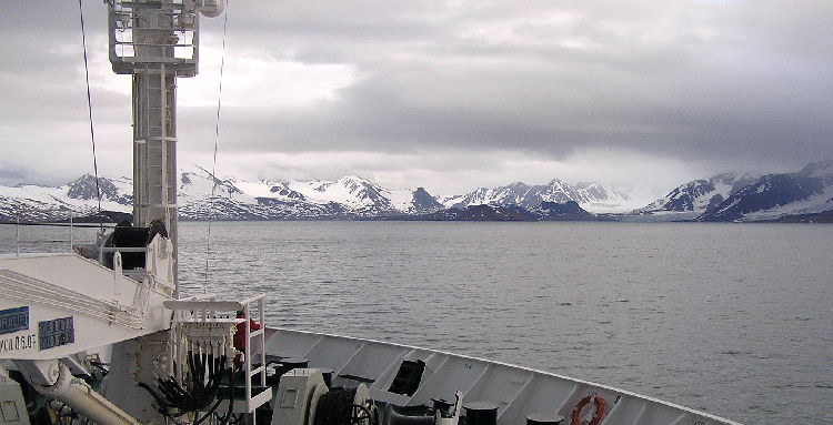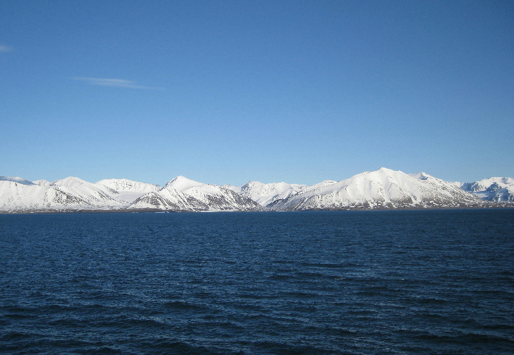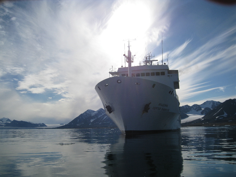 ![]() Northernmost RR - from coal mining days | ![]() Our ship - the Russsian spy/ research vessel Vavilov | ![]() Peaceful view of ship & clouds as we leave Ny-Alesund |