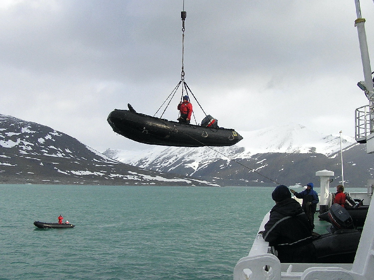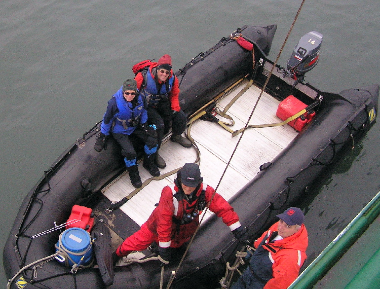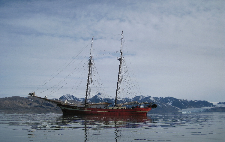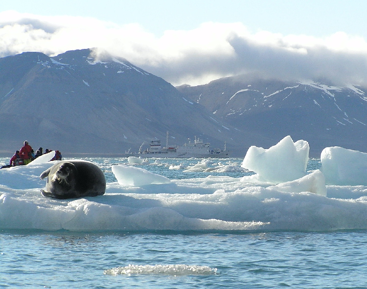 ![]() Zodiacking - seal to left | ![]() Bearded seal | ![]() At anchor off Ny-Alesund Was a coal mining town Now an Intl. science town 8/16/08 |