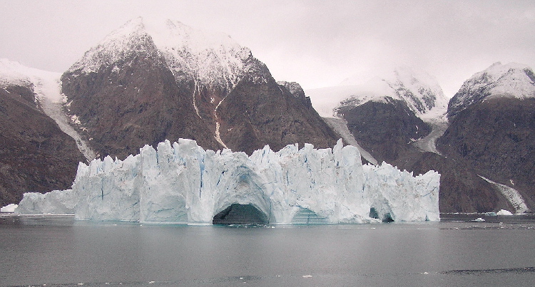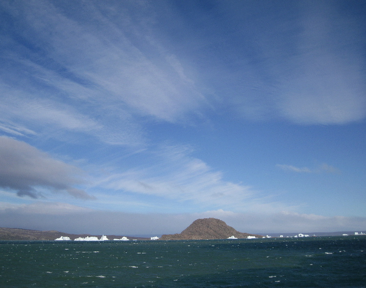 ![]() Berg with it's own waterfall | ![]() Berg & mountains. Unable to land at Imgmikertata Kangertiva because of wind and waves | ![]() Approaching Ittoggortoormiit |