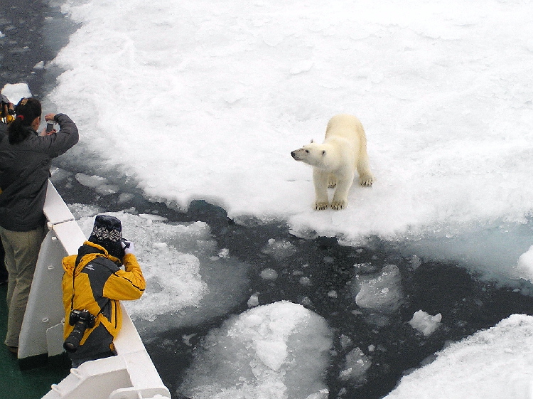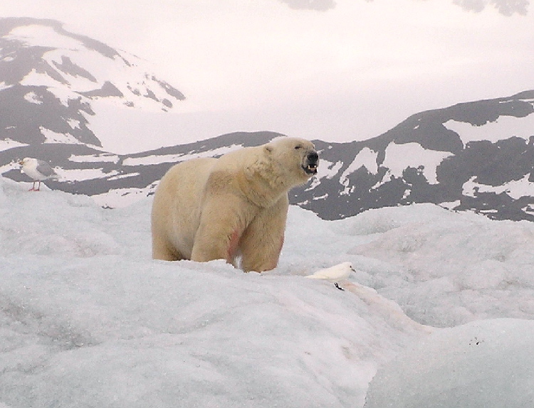 ![]() Sailing into Sea Ice Kong Karls Land 8/12/08 | ![]() Beautiful Polar Bear sow near ship | ![]() REALLY near ship |
