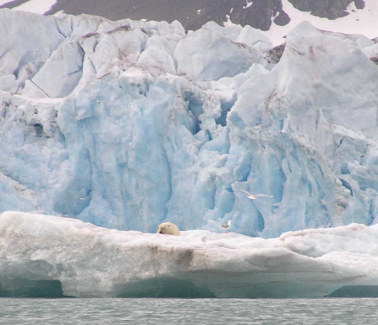 ![]() Spot the poler bear | ![]() 600 nautical miles to North pole | ![]() Sun breaks thru at Monaco glacier 8/14/08 |