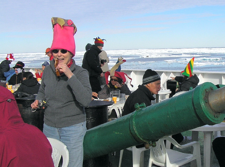 ![]() Harbor seal (no harbor here) | ![]() Even the kayakers were out | ![]() At breakfast 8/20/08, almost furthest N, Dutch sent Neil to walk to North Pole |