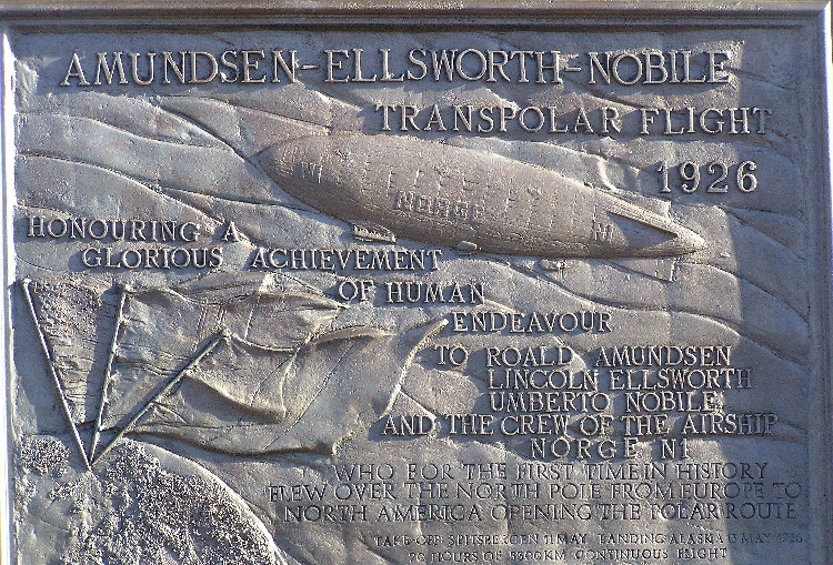 ![]() Mountains & glaciers from Ny-Alesund where Amundsen & others launched polar expeditations | ![]() Plaque re: Amundsen/Nobile airship flight over N pole | ![]() The airship tower |