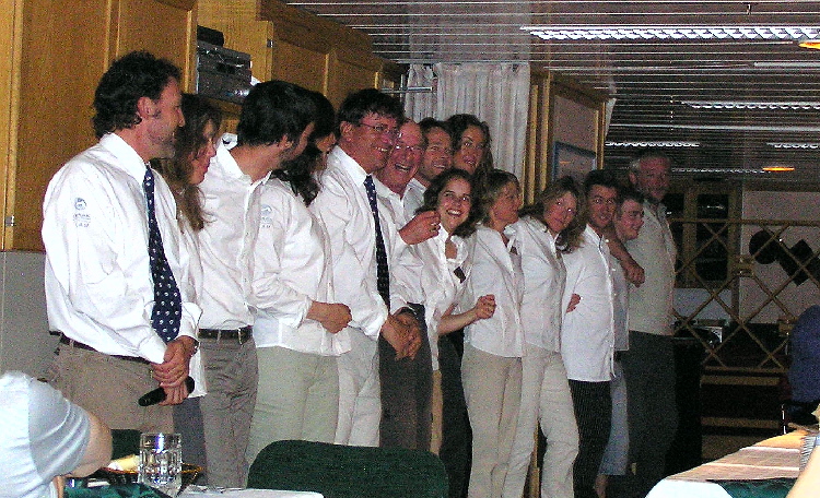 ![]() Looking up at the other side of Alkornet | ![]() Leader Dutch, Guide and Dining staff bid fairwell at last dinner, 1st cruise | ![]() Sunset (as low as sun got) last night of 1st cruise 8/17/08 |