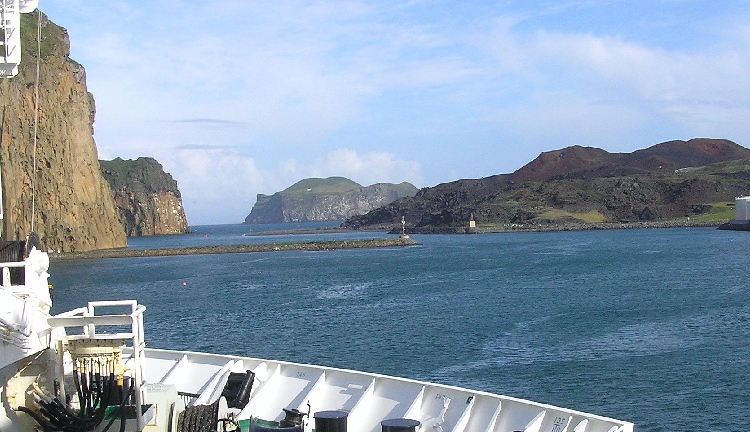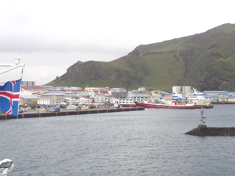 ![]() Arriving Heimaey, Westmann Islands, Iceland 8/30/08 | destroyed much of Heimaey and almost closed the narrow port entrance. (See,eg,One person's story) |