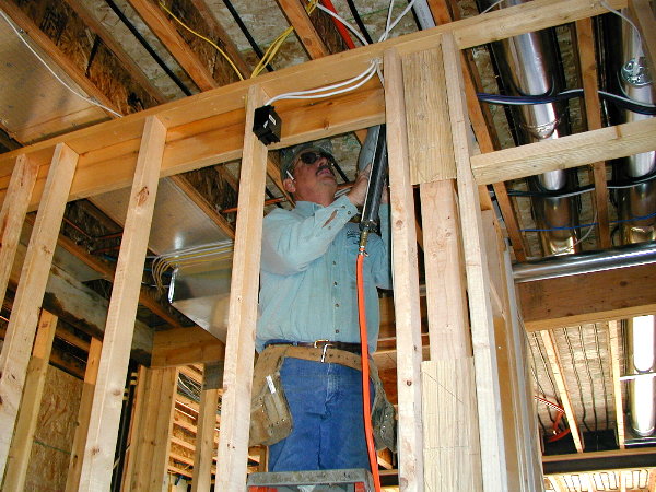 GREG & MICHAL PLAN SHOWER VALVES. JERAMY INSTALLS ALARM 10/28/03