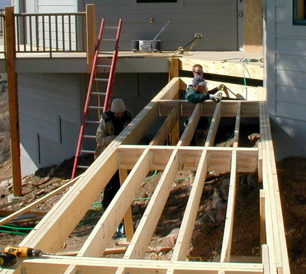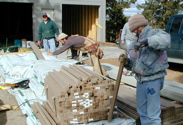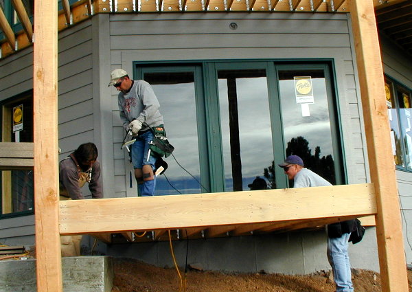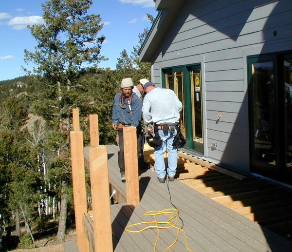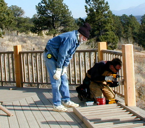 |  NEIL HELPS BRAD INSTALL DECK RAILING 10/30/03