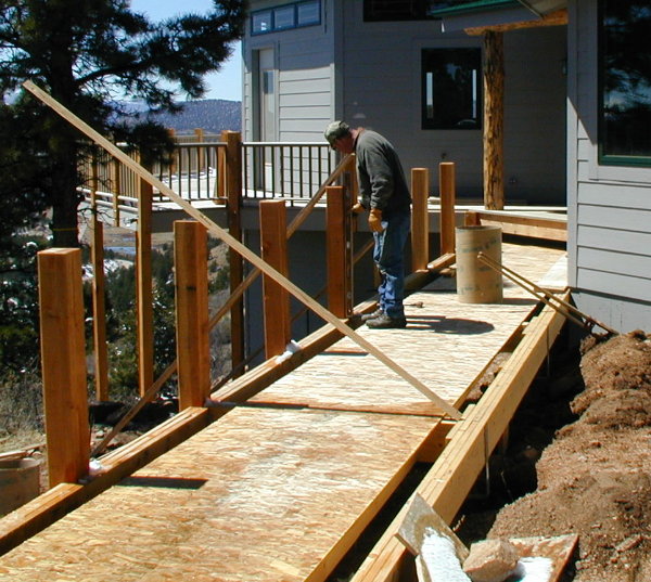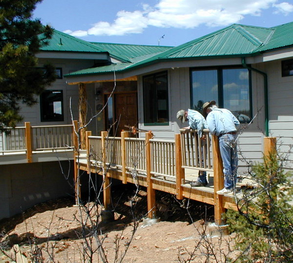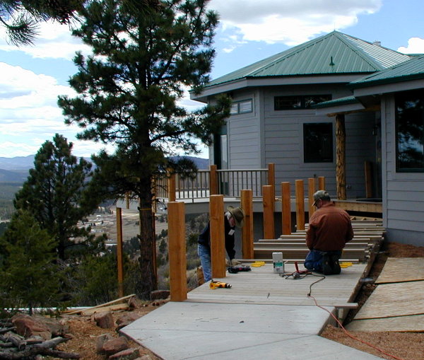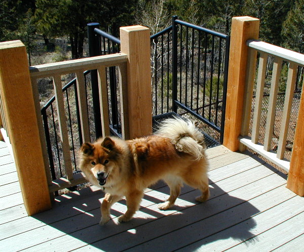 ZUCCA BEAR INSPECTS JUST COMPLETED OUTSIDE STAIR RAILING 5/7/04