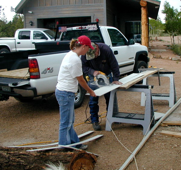 CHERI LIN & HER FATHER GERALD WORK ON TRIM FOR GARAGE STEPS 6/3/04