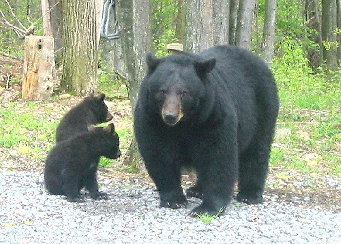 Black Bear Sow & 2 cubs about same size that were outside Michal's office window 5/24/06