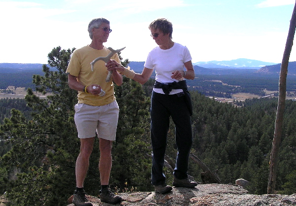Mike, antler and Nan on top Cougar Mountain, Ouray Ridge Visit 10/15-16/05