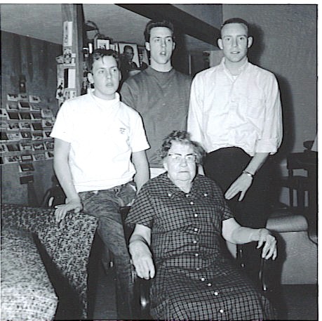|  Ernie, Pete, Neil and Grandma Carlson 1961